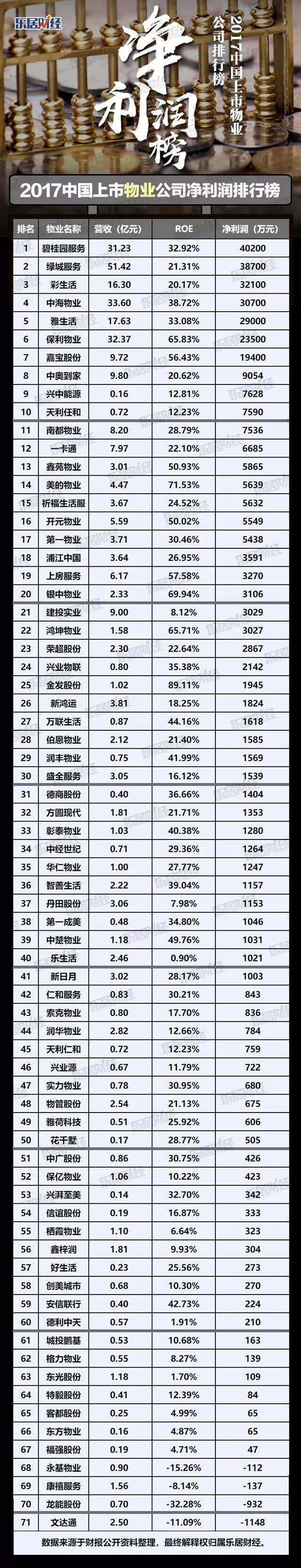 2017中國(guó)上市物業(yè)公司凈利潤(rùn)排行榜