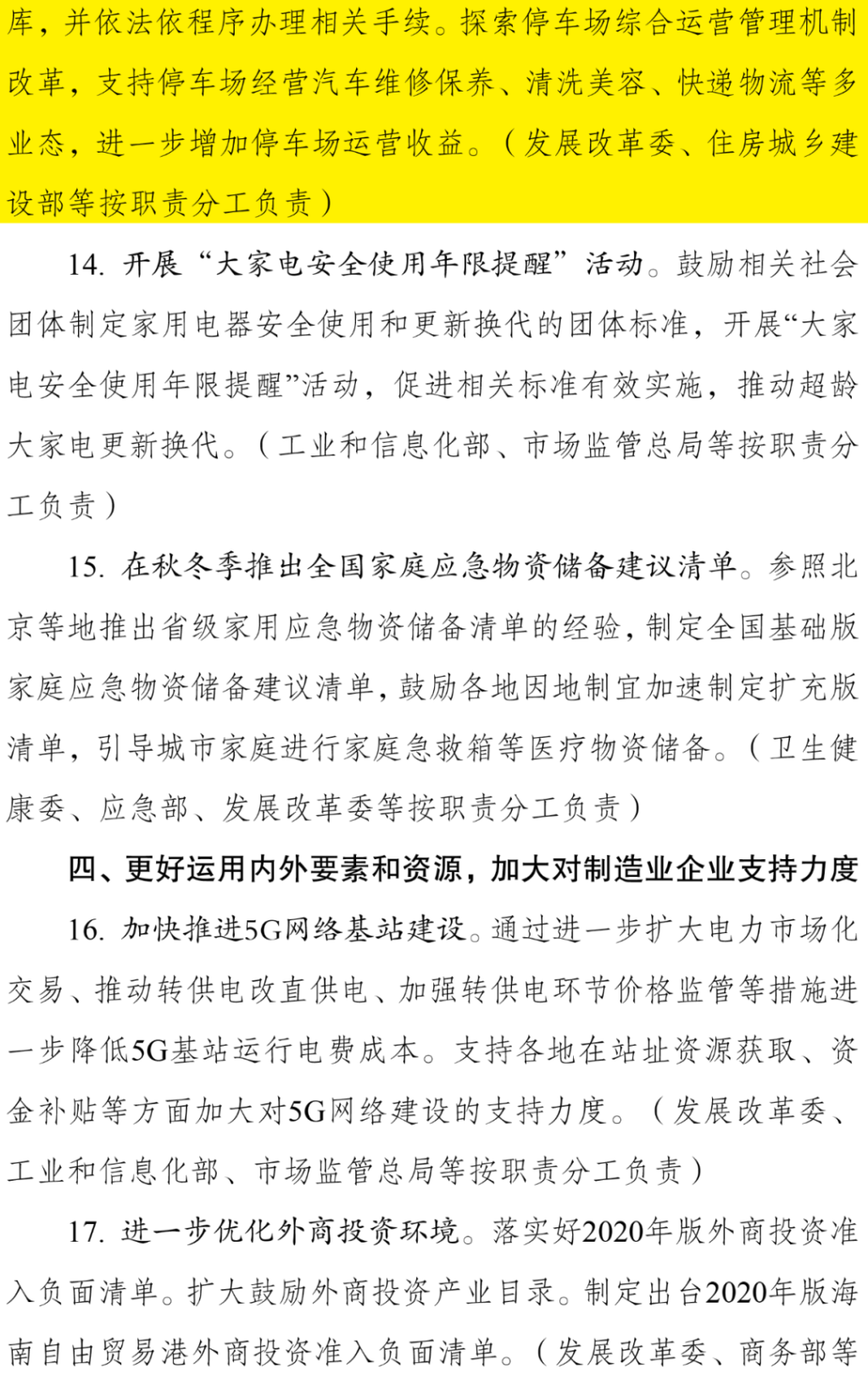 10月29日,發(fā)改委等十四部門聯(lián)合印發(fā)《近期擴(kuò)內(nèi)需促消費(fèi)的工作方案》(簡稱“《方案》”),《方案》提出了19條內(nèi)需促進(jìn)方案,其中4條直接有利于物業(yè)服務(wù)企業(yè)建設(shè)智慧社區(qū),開展社區(qū)生活服務(wù),參加老舊小區(qū)改造業(yè)務(wù),為物業(yè)服務(wù)企業(yè)發(fā)力多元服務(wù)業(yè)務(wù)提供動(dòng)力。第6條