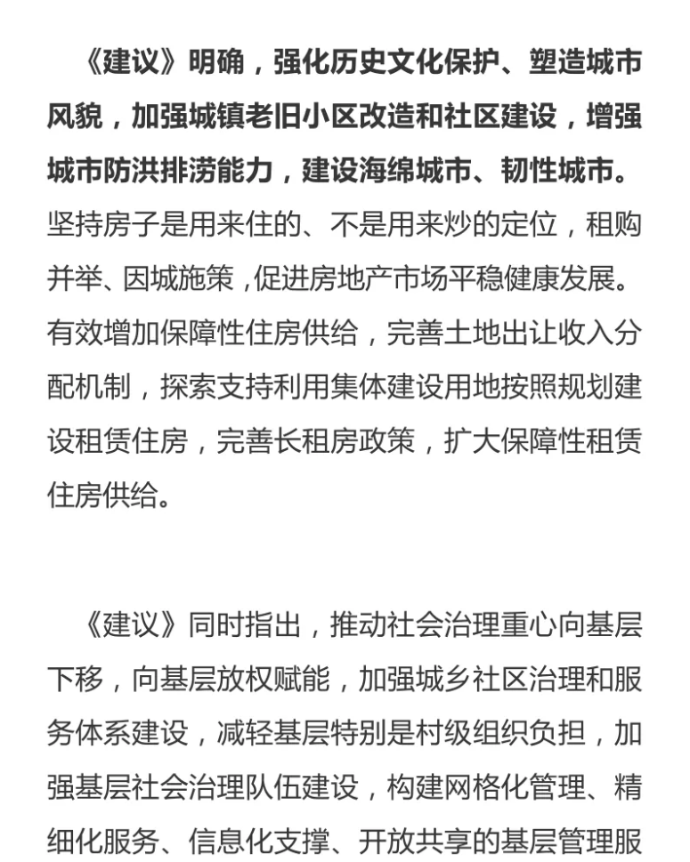 近日,十四五規(guī)劃文件發(fā)布,釋放了哪些與物業(yè)管理相關(guān)的信號(hào)?本文將為讀者梳理這些與物業(yè)相關(guān)的重點(diǎn)和亮點(diǎn)。《中共中央關(guān)于制定國民經(jīng)濟(jì)和社會(huì)發(fā)展第十四個(gè)五年規(guī)劃和二〇三五年遠(yuǎn)景目標(biāo)的建議》整體來看,《建議》由15個(gè)部分構(gòu)成,分為三大板塊。