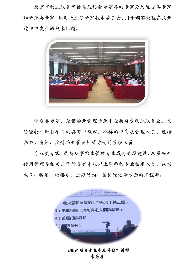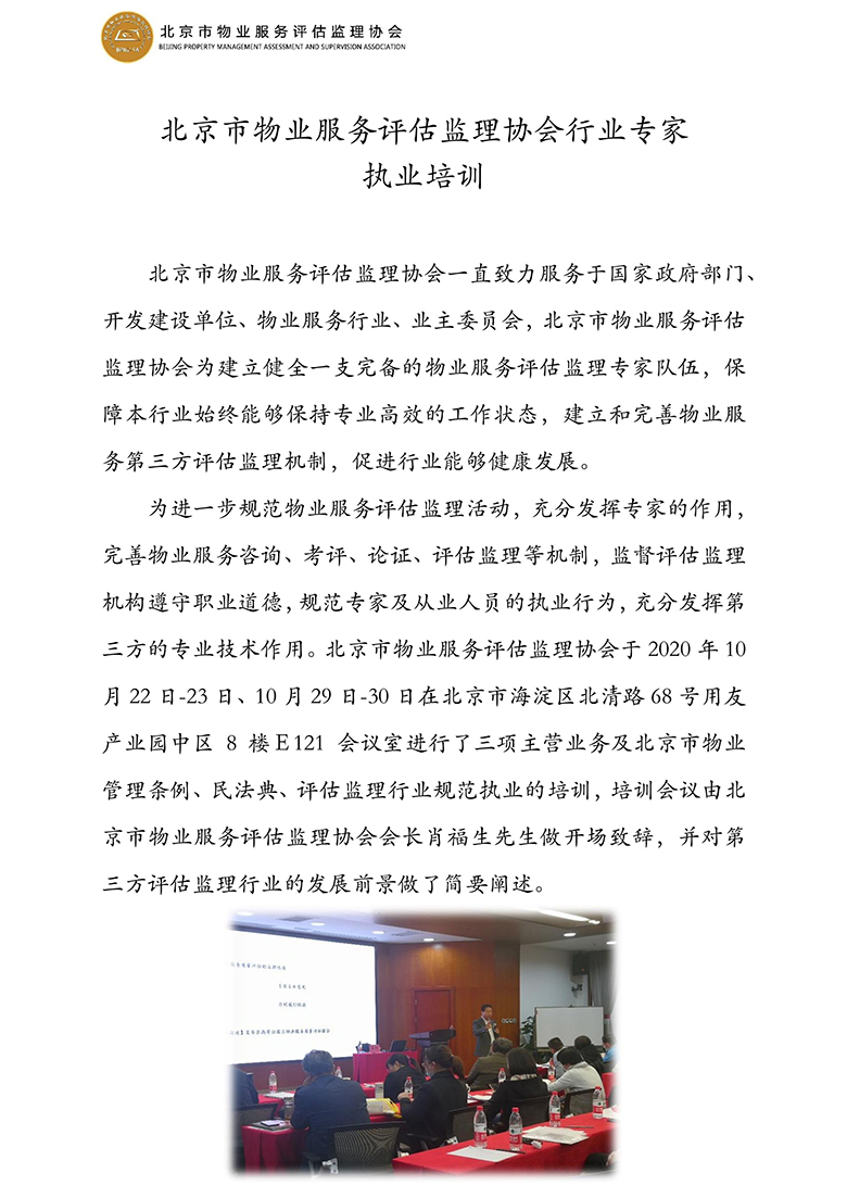 北京市物業(yè)服務評估監(jiān)理協(xié)會行業(yè)專家執(zhí)業(yè)培訓